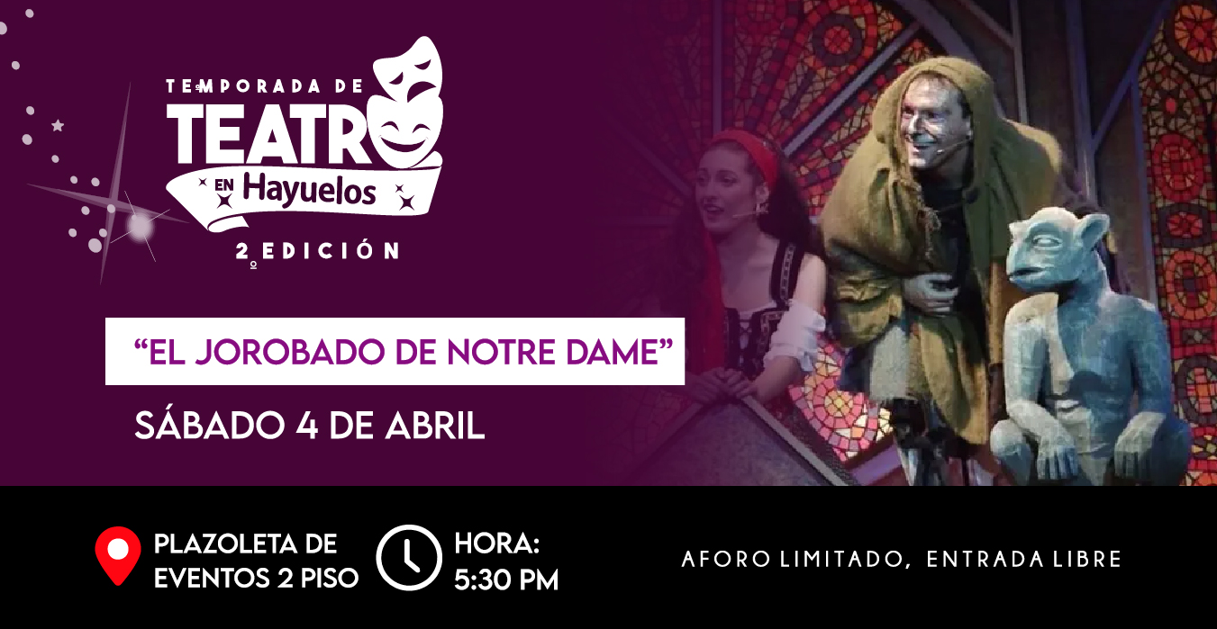 ¡Ven a disfrutar de una inolvidable historia que llega al teatro!. Te invitamos a disfrutar de “El Jorobado de Notre Dame”, una puesta en escena llena de emoción, pasión y grandes mensajes sobre el amor y la aceptación.