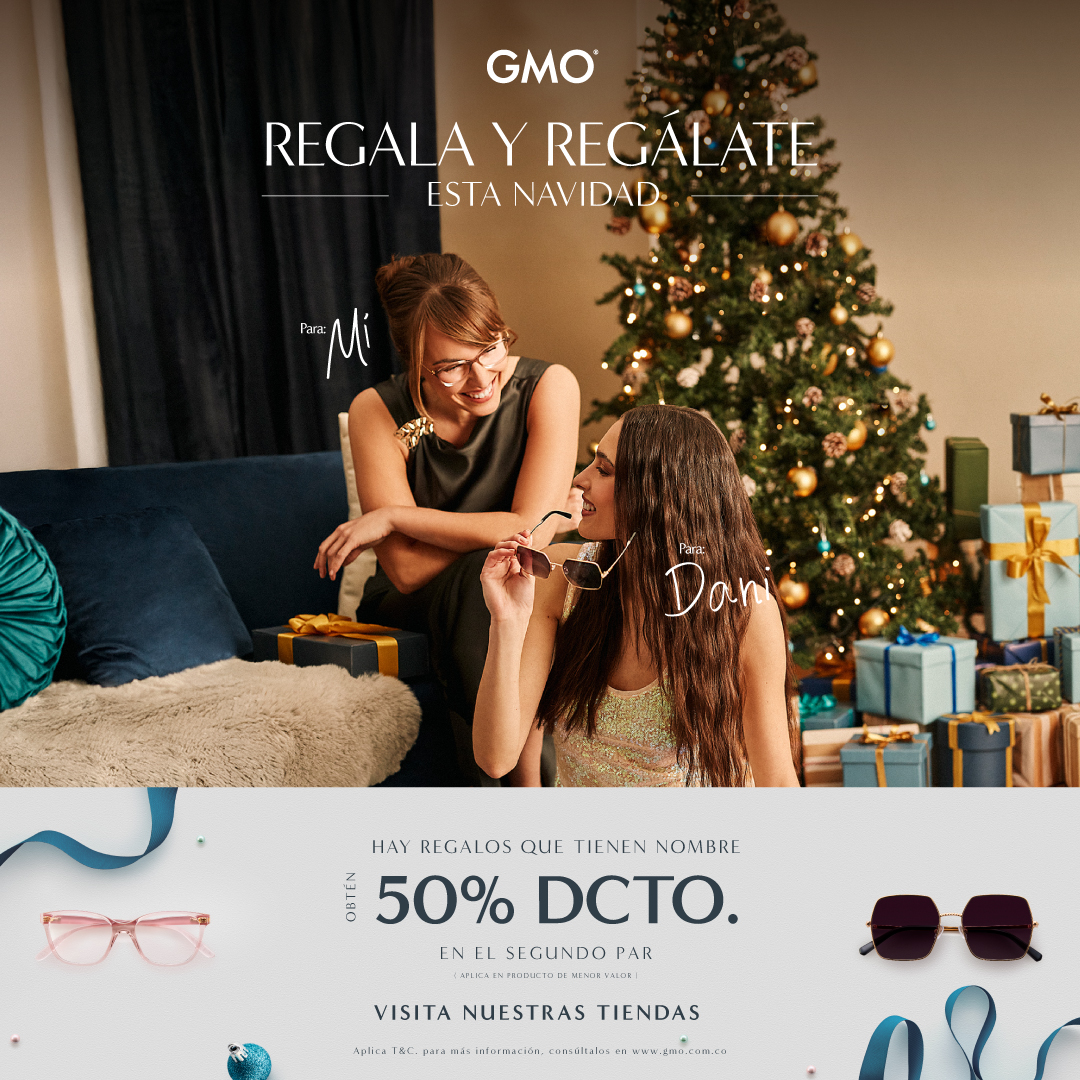 ¡Llego Navidad a GMO! Visita nuestras tiendas y obtén hasta 50% dcto en tu segundo par aplica en el producto menor de valor. Vigencia: Desde el 2 de diciembre 2025 – Hasta el 31 de diciembre 2025