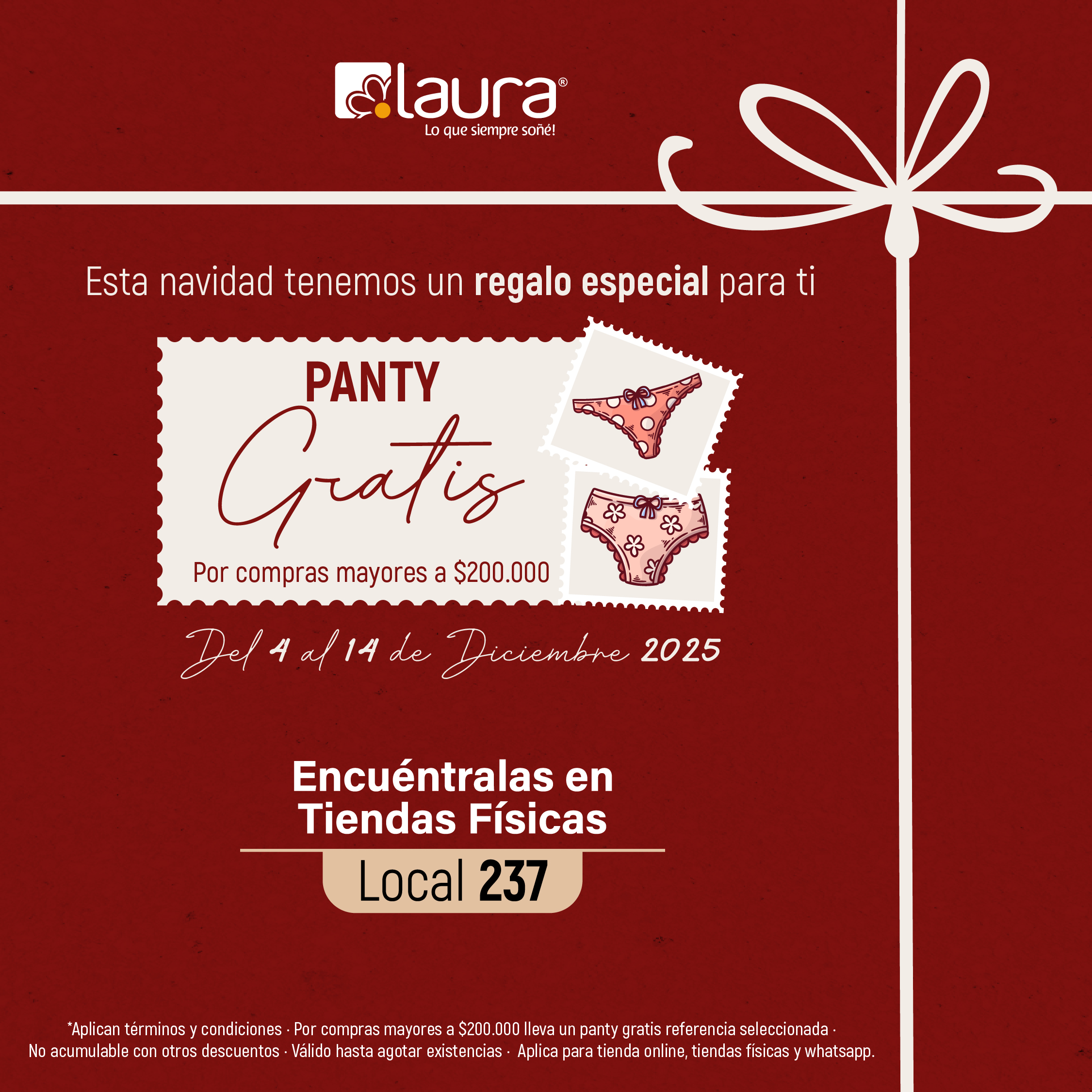 🎄 Esta Navidad te llevas un regalo extra… ¡pantys GRATIS por compras desde $200.000! 🎁 @laura_ropainterior